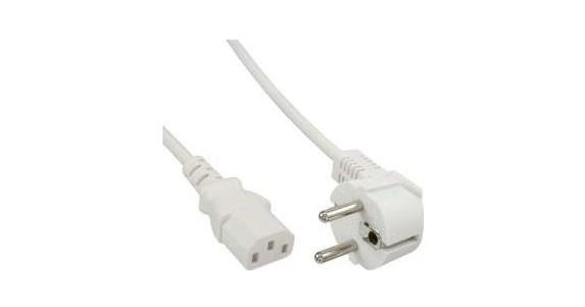 InLine power cable, CEE 7/7 angled / 3pin IEC C13 male, white, 1m, 1 m, C13 coupler, CEE7/16