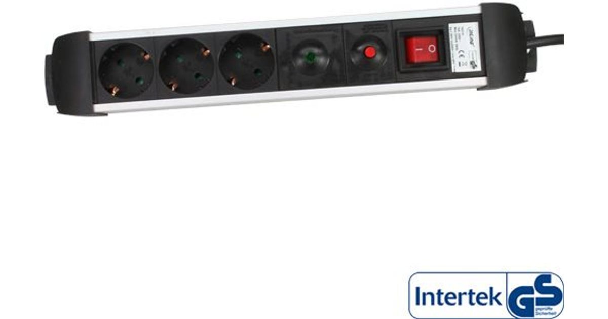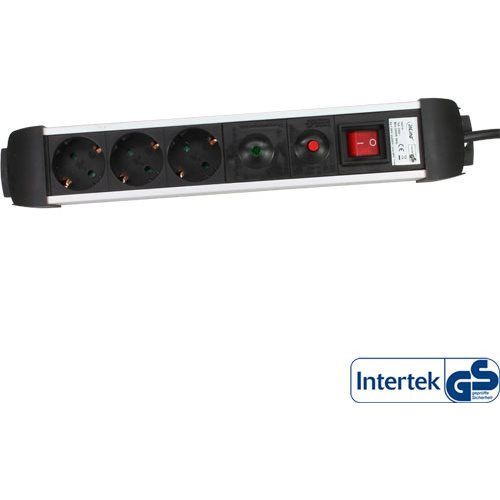 InLine Socket Strip, Aluminum, 3-way with protection, switch, 1.5m