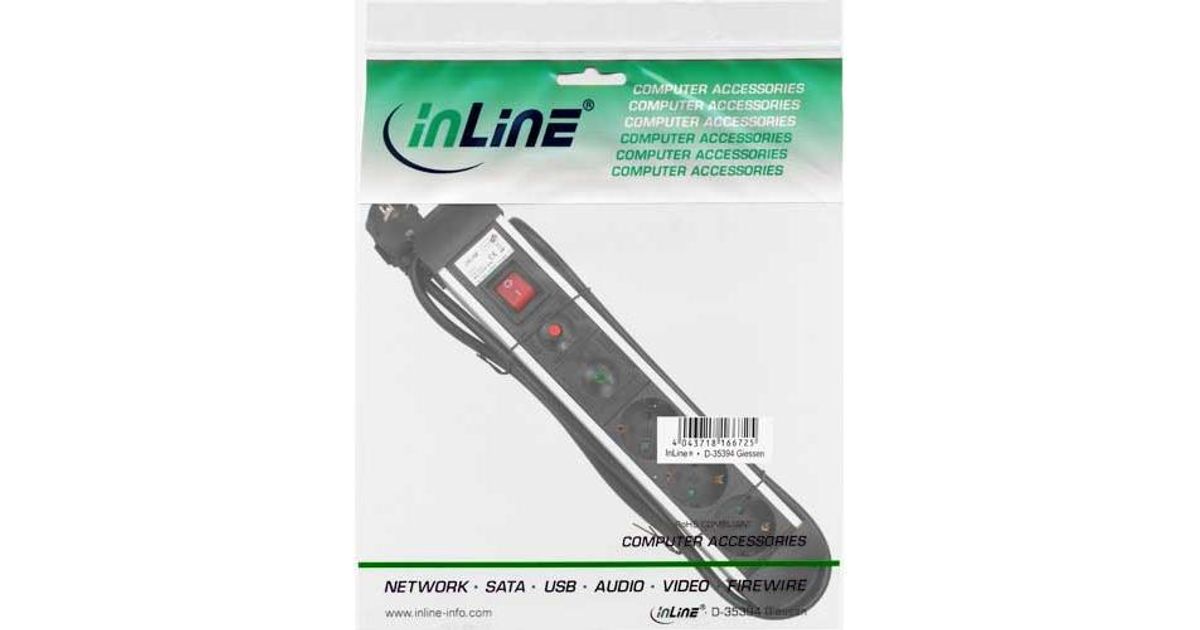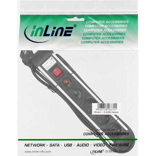 InLine® Socket outlet strip with overload and overvoltage protection, for connecting several electrical consumers to one socket outlet.
