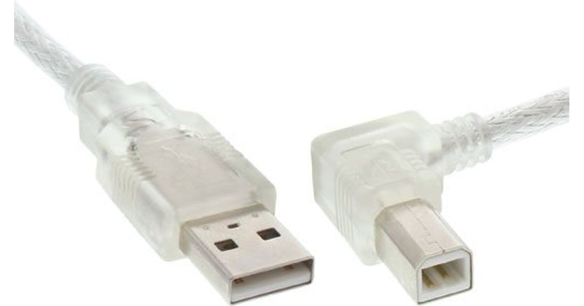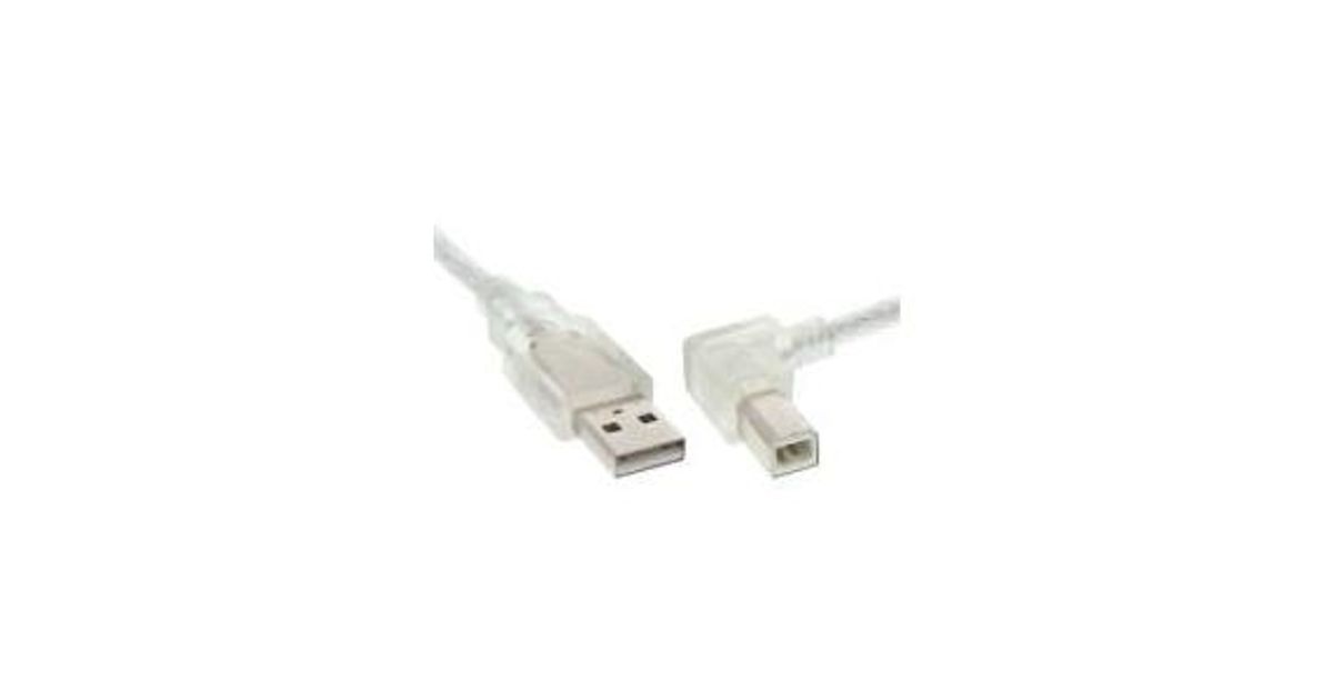 InLine USB 2.0 Cable right angled Type A male / B male transparent 1m, 1 m, USB A, USB B, Male/Male, 480 Mbit/s, Transparent