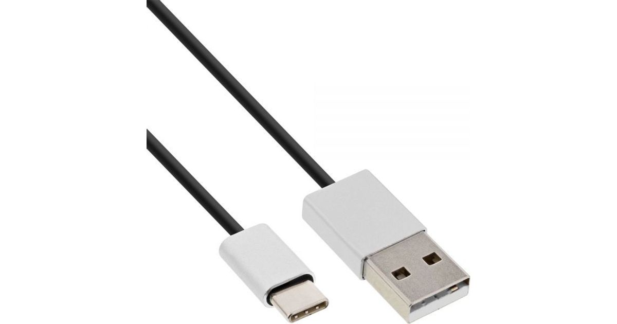 InLine USB 2.0 Cable, Type C male / A male, black/alu, flexible, 1m, 1 m, USB C, USB A, USB 2.0, Male/Male, Black