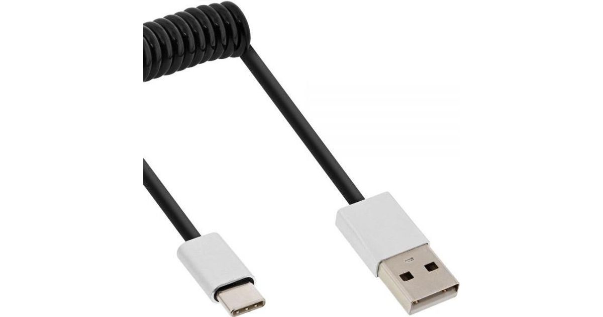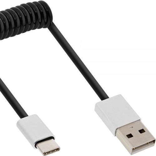 InLine USB 2.0 spiral cable, Type C male / A male, black/alu, flexible, 0.5m, 0.5 m, USB A, USB C, USB 2.0, Male/Male, Black