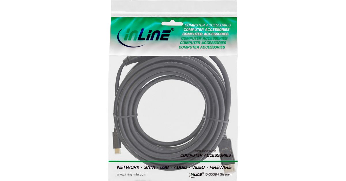 InLine USB Display Cable, USB Type-C male to DisplayPort male, 7.5m, 7.5 m, USB Type-C, DisplayPort, Male, Male, Straight
