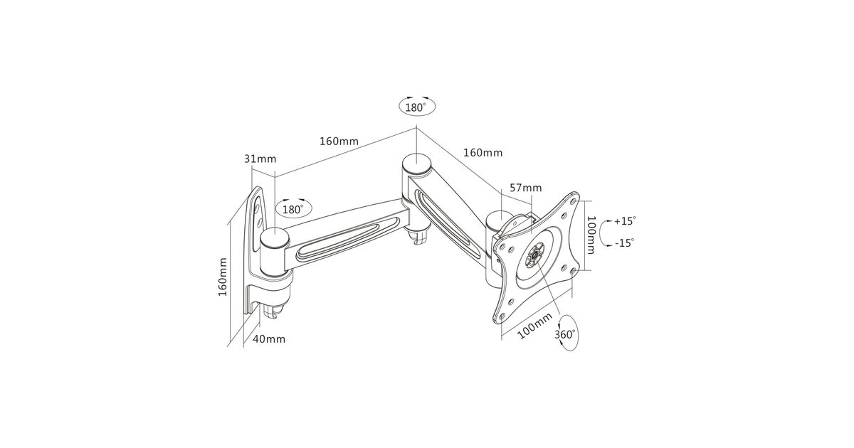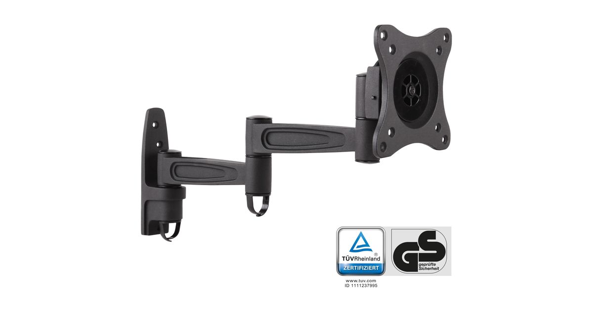 InLine Wall mount, for monitors up to 68cm (27"), max. 15kg, 2-part arm, 75 x 75 mm, 100 x 100 mm, -90 - 90°, -90 - 90°, Aluminium, Black