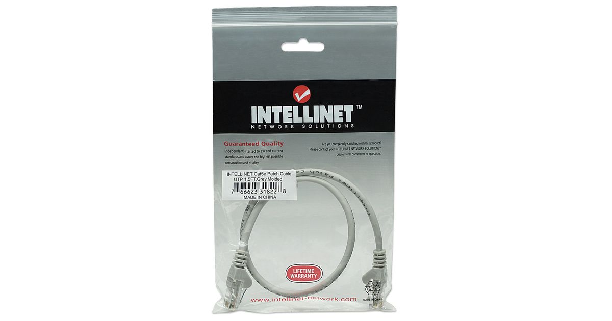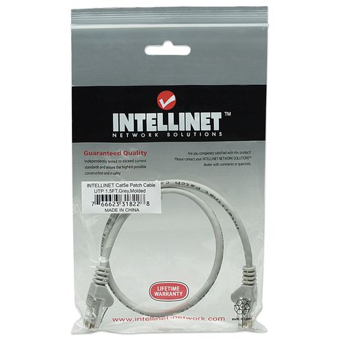 Intellinet Network Patch Cable, Cat5e, 0.5m, Grey, CCA, U/UTP, PVC, RJ45, Gold Plated Contacts, Snagless, Booted, Lifetime Warranty, Polybag, 0.5 m, Cat5e, U/UTP (UTP), RJ-45, RJ-45