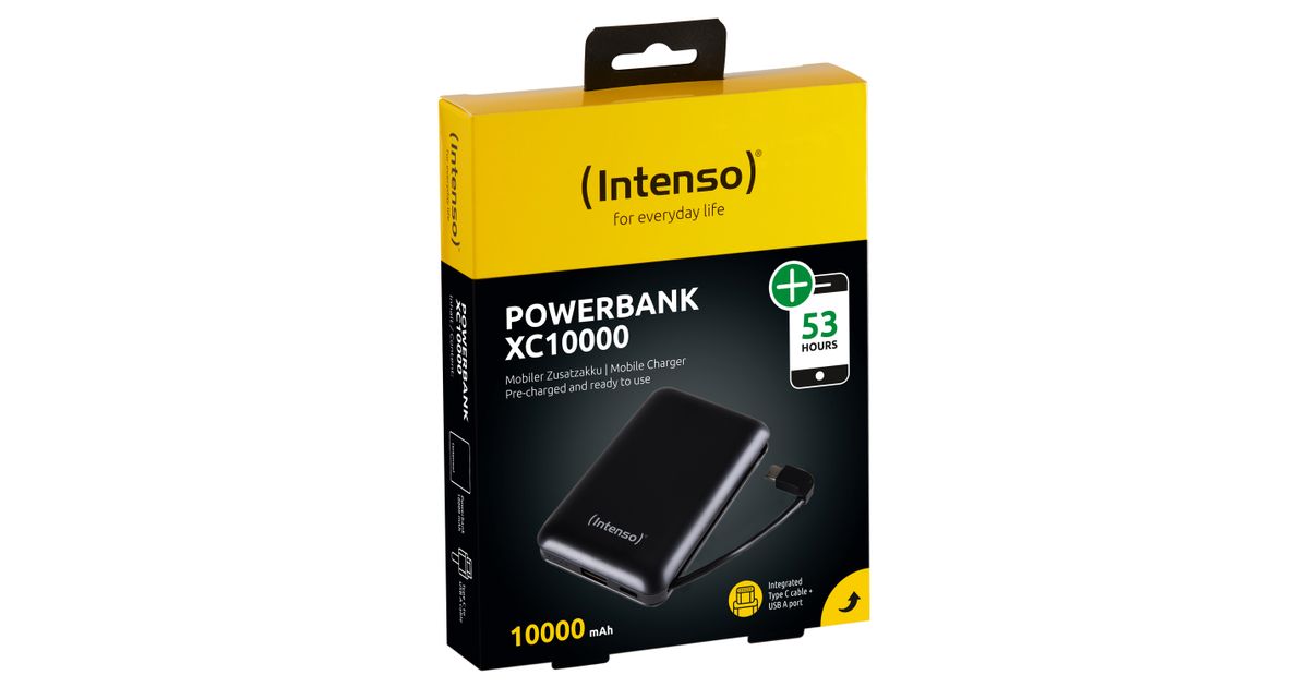 With 10000 mAh the Powerbank has enough capacity to recharge smartphones several times. The integrated cable allows fast charging with up to 3.0 amperes, the USB connection supplies 2.4 amperes. It is even possible to charge 2 devices in the same time via both connections.