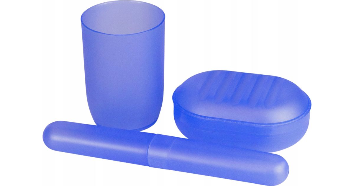 INTER-VION_SET Blue Toilet Set with a beautician bathroom cup + brush mug + soapper + organizer