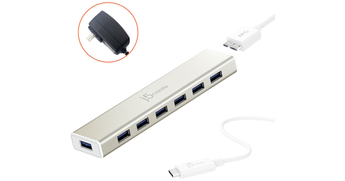 J5Create Jch377-N 7 Ports Usb 3.2 1St Gen (Usb 3.0) Hub Silver