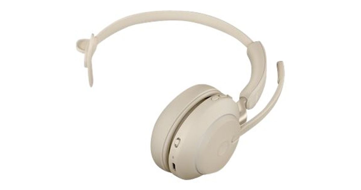 Jabra Evolve2 65 USB-C UC Chrg stand Mono - Beige, Headset, Head-band, Office/Call center, Beige, Monaural, Volume +, Volume -