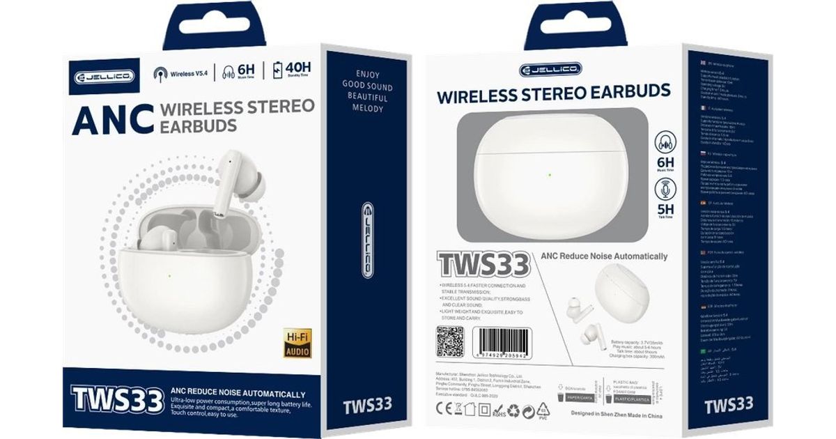 JELLICO słuchawki bezprzewodowe (ANC) TWS33 Biały