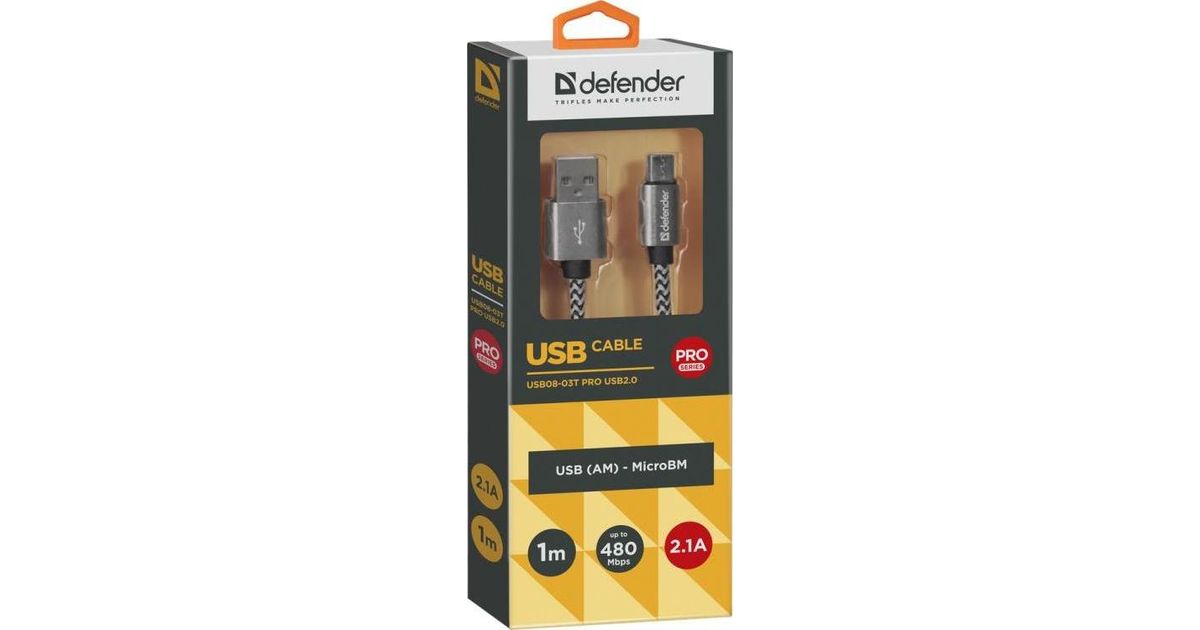 Kabel USB Defender AM-micro BM 1m 2,1A biało-czarny