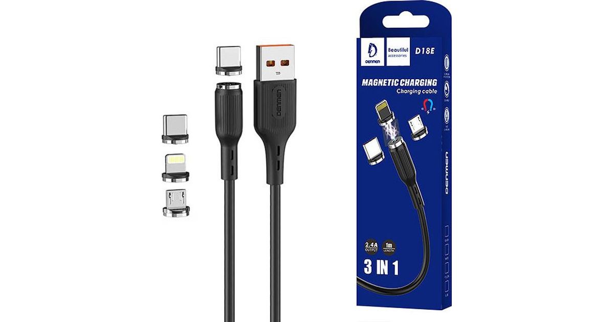 Kabel USB Denmen D18E USB-C Micro USB Lightning czarny (29367)