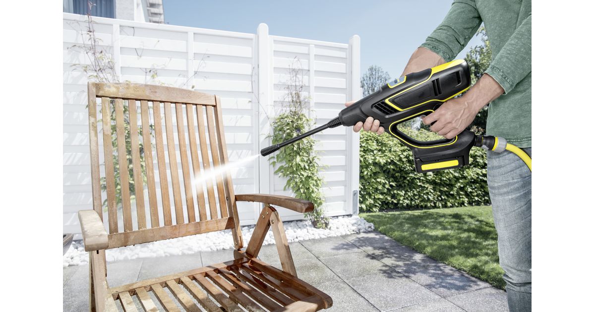 The PS 20 power scrubber for the battery-powered pressure cleaner KHB 5 Battery is equipped with 2 integrated nozzles, has a splash guard with bristles and can be rotated by 90 degrees. This means that it is easier to access hard-to-reach spaces.
