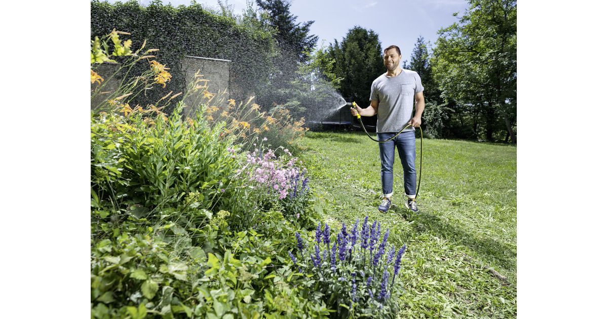 The focal point of the new 50-metre long Performance Plus 1/2" quality garden hose is the improved-feel, high-quality multi-layered woven material from which it is made. This flexible material is extremely resistant to kinks, making the hose ultra-robust and ensuring a constant water flow. And that's not all – the hose also sits much better in your hand. The anti-UV outer layer protects the material from weather damage. The middle layer blocks out all light so that algae cannot form inside the hose. What's more, the durable hose is free from phthalates (< 0.1%), cadmium, barium and lead – meaning it does not contain any substances that are harmful to human health. The hose is also capable of withstanding pressures of up to 45 bar and temperatures from -20 to +60 °C. The Performance Plus garden hose is the ideal solution for anybody wishing to water medium to large gardens and other spaces. This model comes with a 15-year warranty.