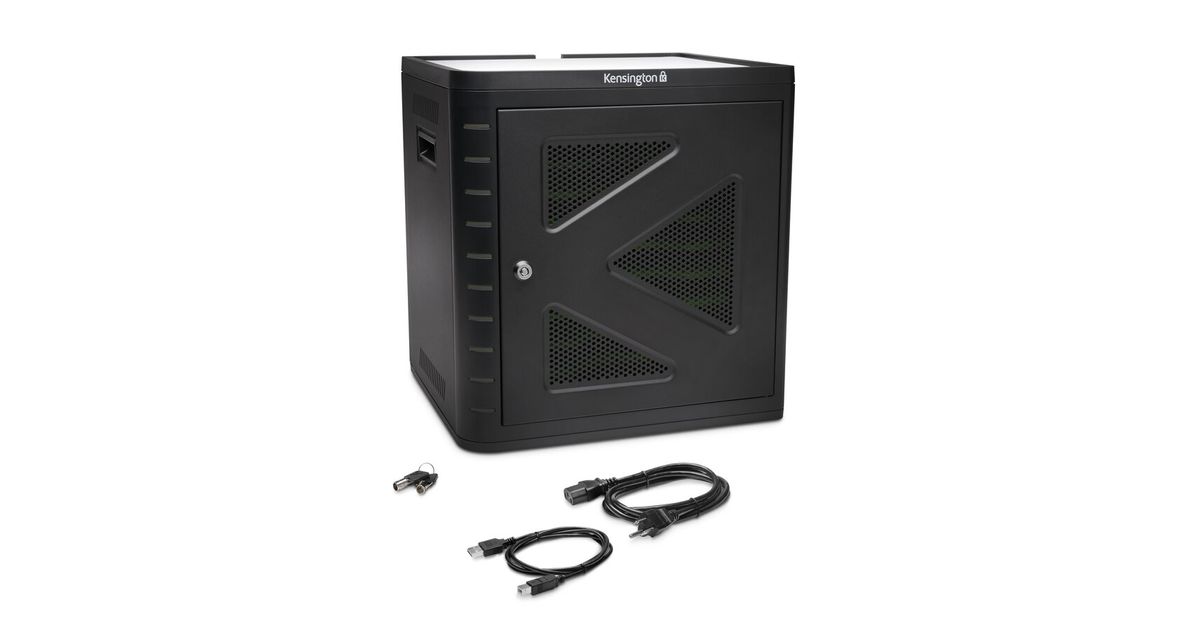 Kensington Charge & Sync Cabinet, Universal Tablet — Black, Portable device management cabinet, Black, Floor, Table, 9 shelves, Tablet, USB