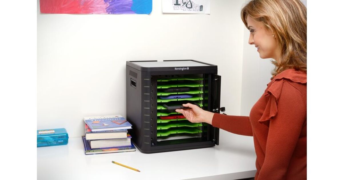 As more tablets are deployed into classrooms, businesses and retail spaces, providing a convenient and secure storage location is becoming a big need. Luckily, Kensington has the perfect answer with the new Charge & Sync Cabinet, Universal Tablet. With space for up to 10 tablets including iPads, Galaxy Tabs, Kindles and more, the cabinet is the perfect place to charge the tablets after everyone has gone home for the day so they’re powered up and ready in the morning. Plus, with adjustable drawers, each bay can accommodate tablets in a protective rugged case. Stack up to three cabinets and you’ve got storage for up to 30 tablets in one classroom. A tamper-resistant, retracting front door offers security with customized key access, and the included mounting plate or cable lock keeps the cabinet in place.