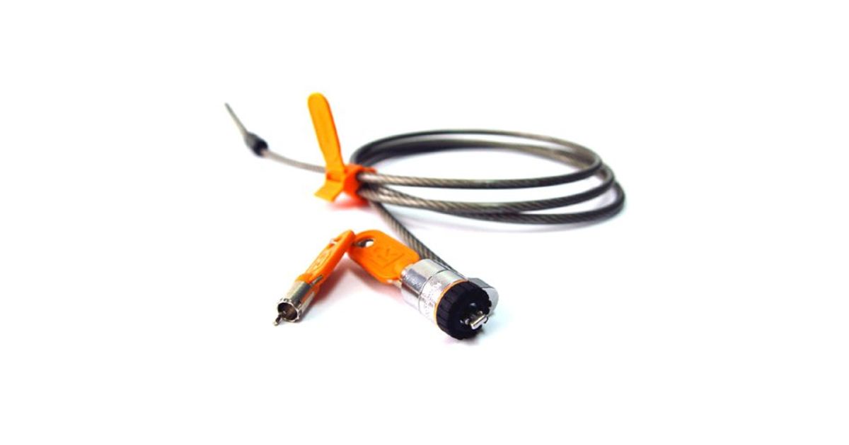 Carbon steel cable is cut-resistant and anchors to desk, table or any fixed structure