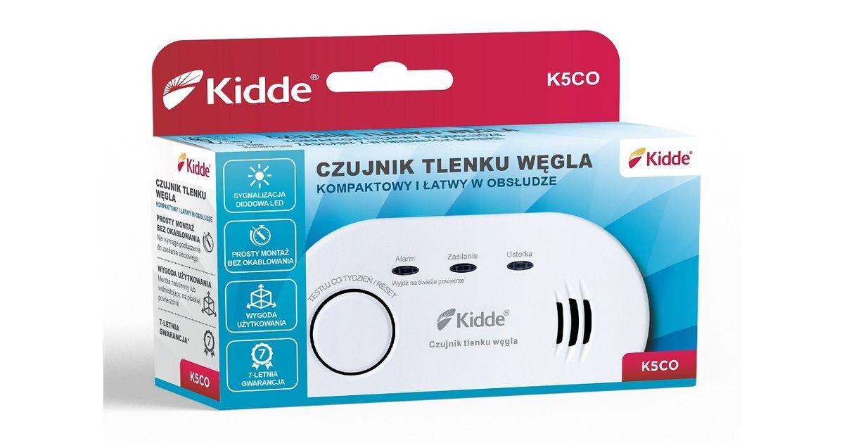 K5CO carbon monoxide sensor equipped with a Kidde electrochemical sensor, guaranteeing 10 years of operation. Battery power supply allows the detector to be mounted in an optimal place in the room and provides protection also in the event of a power failure in the network. Exceeding the permissible CO level is signaled optically (red LED) and acoustically (loud, pulsating sound alarm with a strength of 85dB). The device's memory stores information about the detection of CO concentration exceeding the level of 100 PPM. Thanks to this, the user can make sure that there is no emission of carbon monoxide during his absence in the room. The sensor has a test / reset button that allows you to check the operation of the device and reset the alarm signal. The efficiency control system monitors on an ongoing basis, among others: the sensor, internal circuits and the state of the battery. In the event of a malfunction or low battery level, the yellow LED flashes and an audible warning sounds. In addition, the sensor is equipped with a function that allows you to quickly check the correct response of the sensor to the CO test gas. Thanks to a specially designed housing, in addition to wall mounting, the sensor can also be placed on a flat surface, e.g. on a bedside table near the bed. After 10 years from the activation of the power supply, the sensor will remind you to replace the device. K5CO is marked with the B building mark confirming compliance with the Polish standard PN-EN 50291-1: 2018 + AC 2021 for home carbon monoxide detectors. The research was carried out by the Scientific and Research Center for Fire Protection, National Research Institute. Józef Tuliszkowski (CNBOP-PIB). In addition, it has a BSI certificate confirming compliance with the requirements of BS EN 50291-1: 2018 issued by the British Standards Institution.