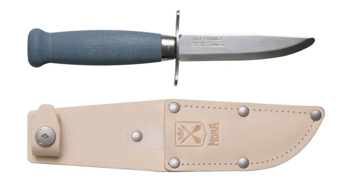 Kids knife Morakniv Scout 39 Safe, leather sheath and double finger guard, Blueberry