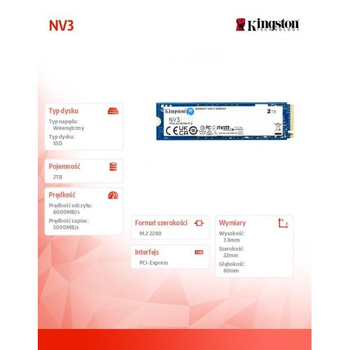 KINGSTON 2000G NV3 M.2 2280 PCIe 4.0 SSD - SSD S-ATA - HDD & SSD - Computer Components - MT Shop
