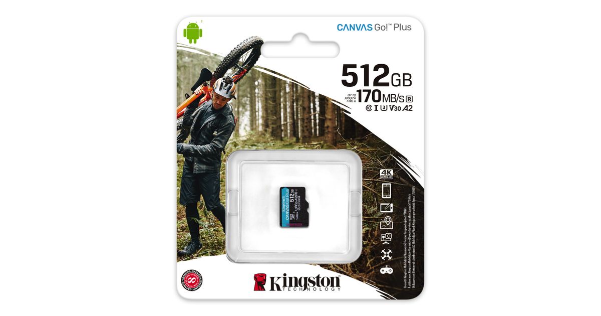 Kingston Technology Canvas Go! Plus, 512 GB, MicroSD, Class 10, UHS-I, 170 MB/s, 90 MB/s