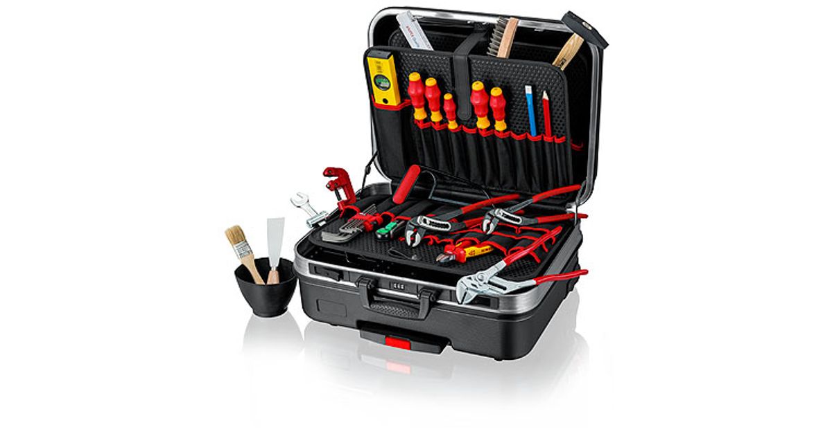 - Equipped with four KNIPEX tools, a total of 31 brand tools, partly VDE-tested according to DIN EN 60900