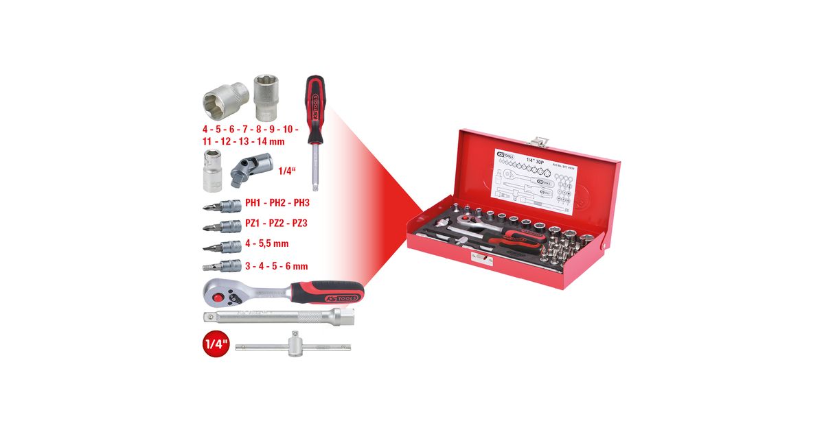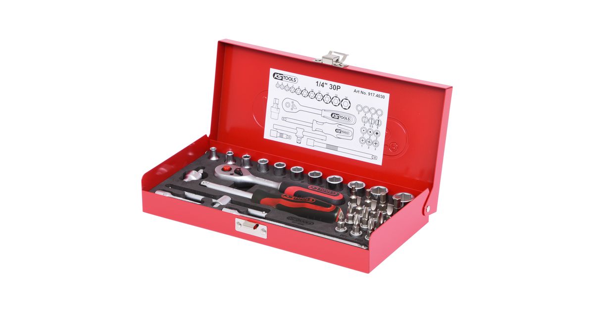 KS Tools 917.4030, Socket set, 1/4", 30 head(s), Chromium-vanadium steel, 1.2 kg