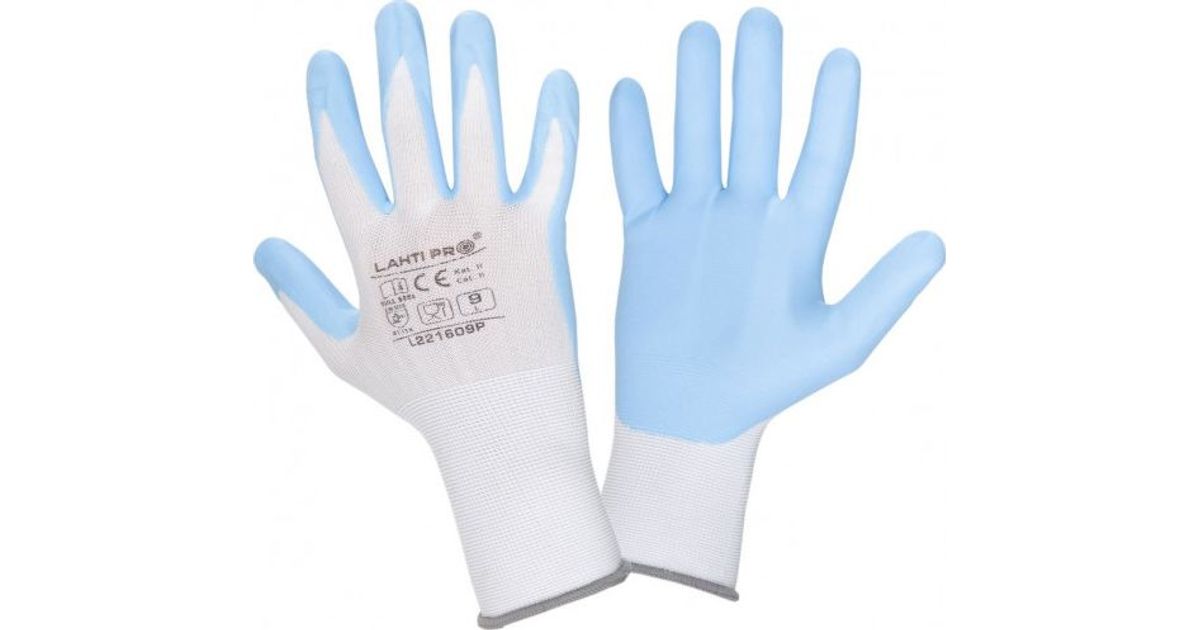 Lahti Pro NITR GLOVES. WHITE-BLUE. L221607P, CARD, "7", CE, LAHTI - Gloves - Safety at work - Tools and accessories - MT Shop