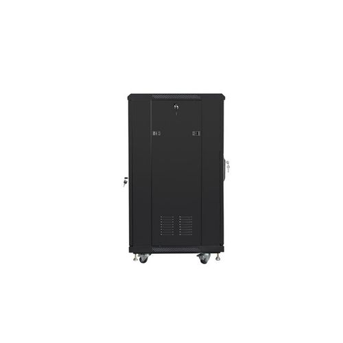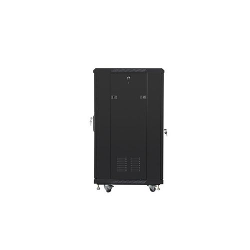 Free standing Lanberg cabinet FF01-6622-12B is a solution designed to expand networks, installation of cabling and equipment in size 19” with max. 800kg. loading capacity. It can be used in networks, server rooms, small, medium businesses and data centers which needs lot of space in cabinet for network equipment's. It can also work in low voltage systems such as cable television networks, alarm systems, fire protection systems and access control systems, CCTV and IP surveillance. Construction is made of high grade cold rolled steel which characterized by excellent design and high quality of craftsmanship. The cabinet allows full adjustment of the depth of the vertical mounting rails. It is equipped with front tempered glass door with lock and possibility installing on right or left side. It has removable side panels (include locks) and rear solid steel door with lock.