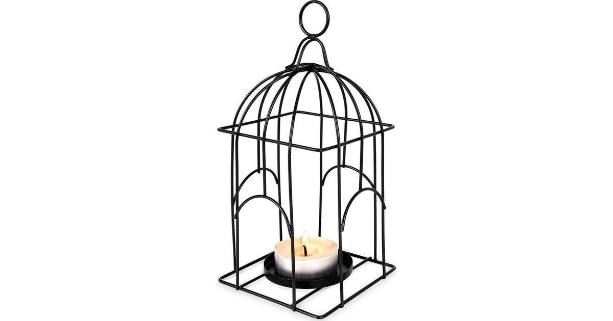 Lantern candle holder for tealight candles, metal black birdcage