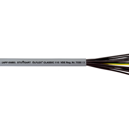 LAPP part number ÖLFLEX® CLASSIC 110 Flexible Power and Control Cable is a number-coded multi-conductor power and control cable for use in all electrical equipment in dry, damp, or wet conditions. It is a European-style cable and conforms to CE.