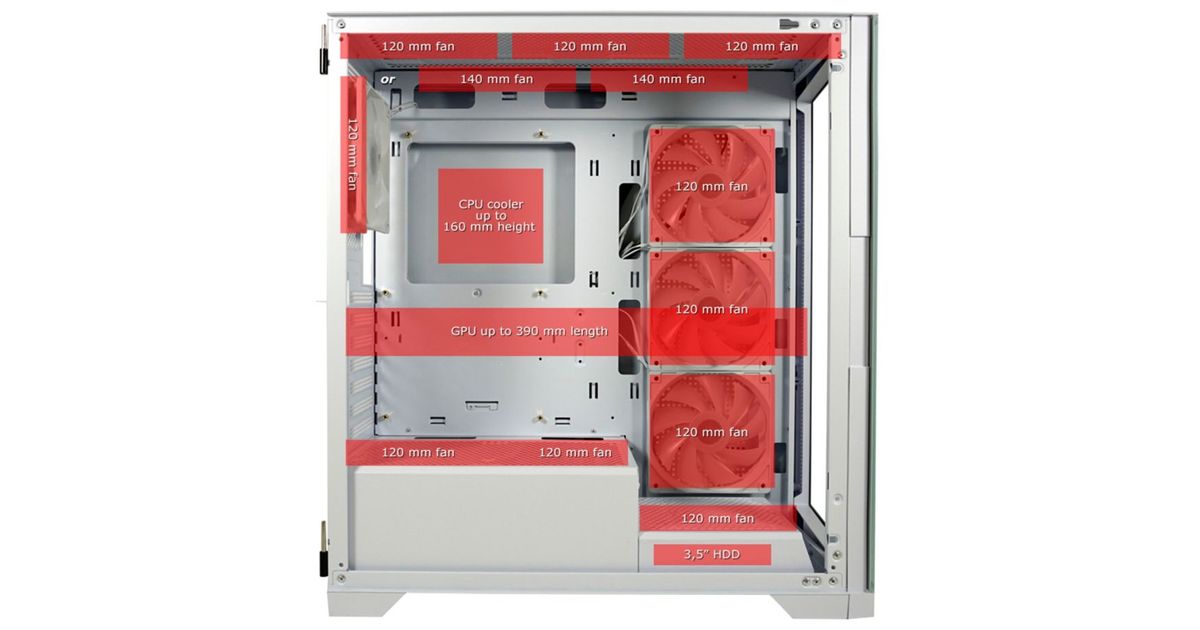 - CPU-Kühler bis zu: 160 mm Bauhöhe