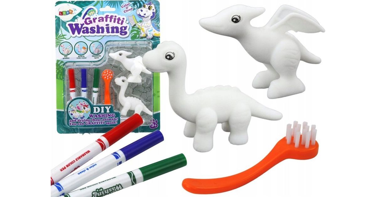 • LeanToys Art Set DIY Dinosaurs Figurines 2pcs Markers Brush