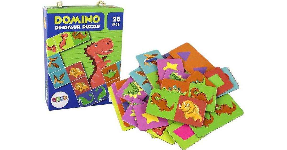 LeanToys Logic Game Double-Sided Puzzle Dominoes Dinosaurs 10cm x 5cm 28 Pieces.