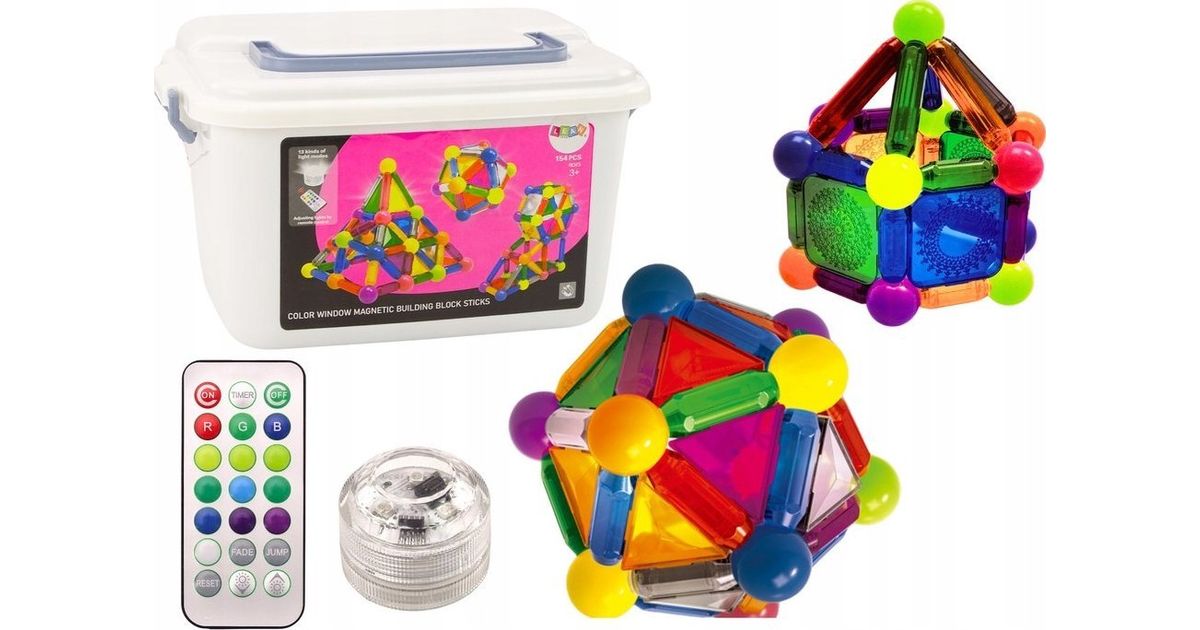 LeanToys Magnetic Blocks with Light in a Box 154 Elements