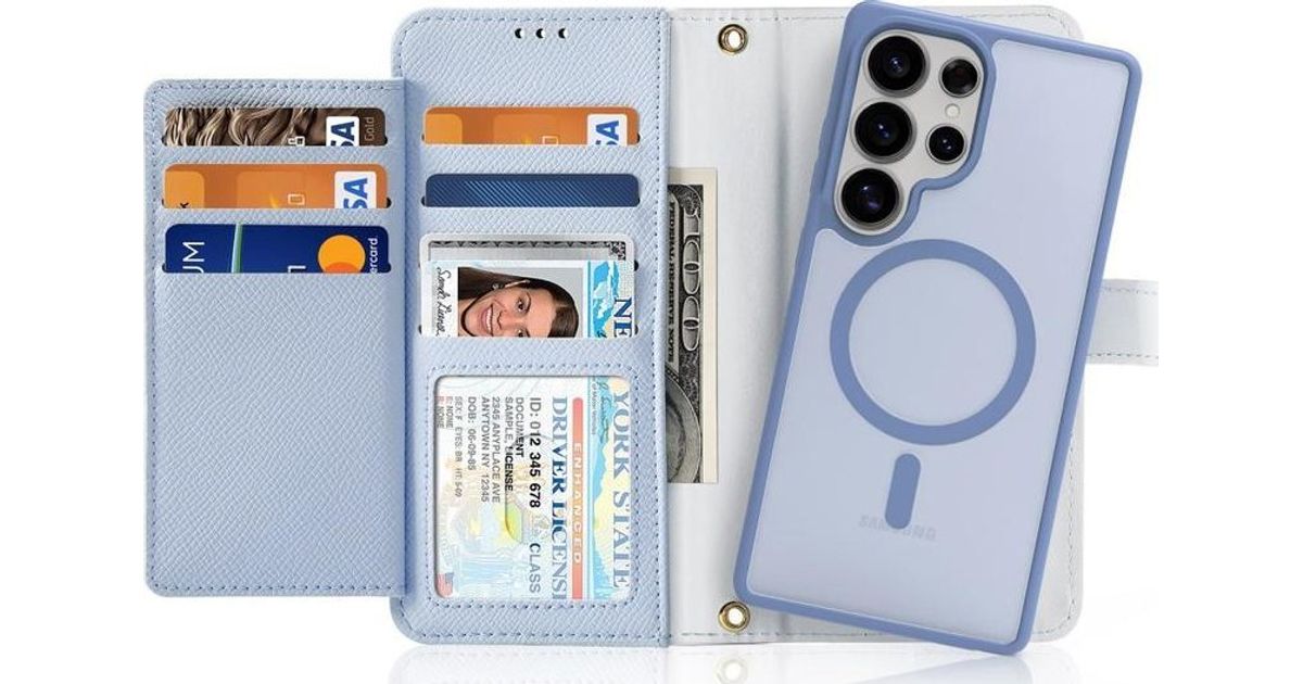 Leather case DUX DACis Lawa on Samsung Galaxy S25 Ultra with a detachable magnetic portfolio - blue