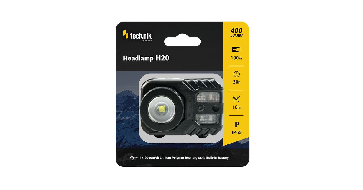 LED-pealamp Technik H20, 400lm, IP65, zoomitav, punase valgusega, USB-laetav