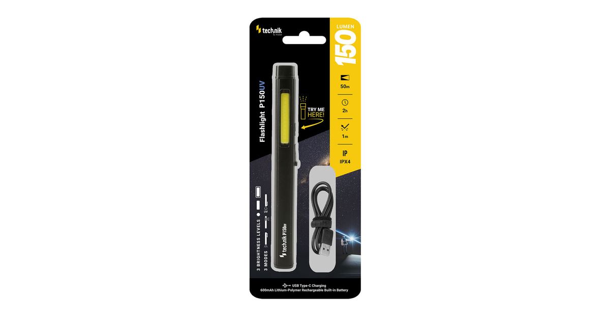 LED-pliiatslamp Technik P150UV 150lm UV-valgusega, USB-laetav, magnet