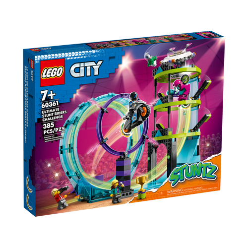 Komplektiga LEGO® City Ülim trikisõitjate väljakutse (60361) ootab tundide kaupa ekstreemset lõbu. Sellesse kolme funktsiooniga alates 7-aastastele mõeldud komplekti kuulub kaks trikimootorratast ja kolm omavahel ühendatavat trikivahendit, nagu 360° sõlm, tulerõngas ja lõbus tulnukatorni väljakutse. Lapsed saavad panna oma oskused proovile, lavastada ägedaid etendusi ning võistelda sõprade ja perega, et saada võitja trofee.