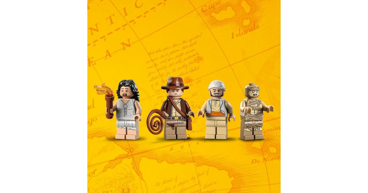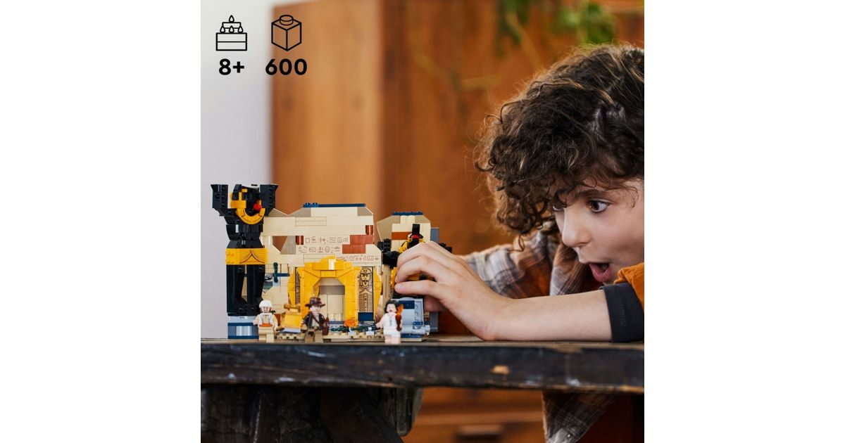 - Set contents: building blocks for the tomb, plus 4 minifigures (Indiana Jones™ with hat and whip, Marion Ravenwood™, Sallah™, Mumi) and numerous interactive details such as the toppling Anubis statue, the hidden passageway and much more