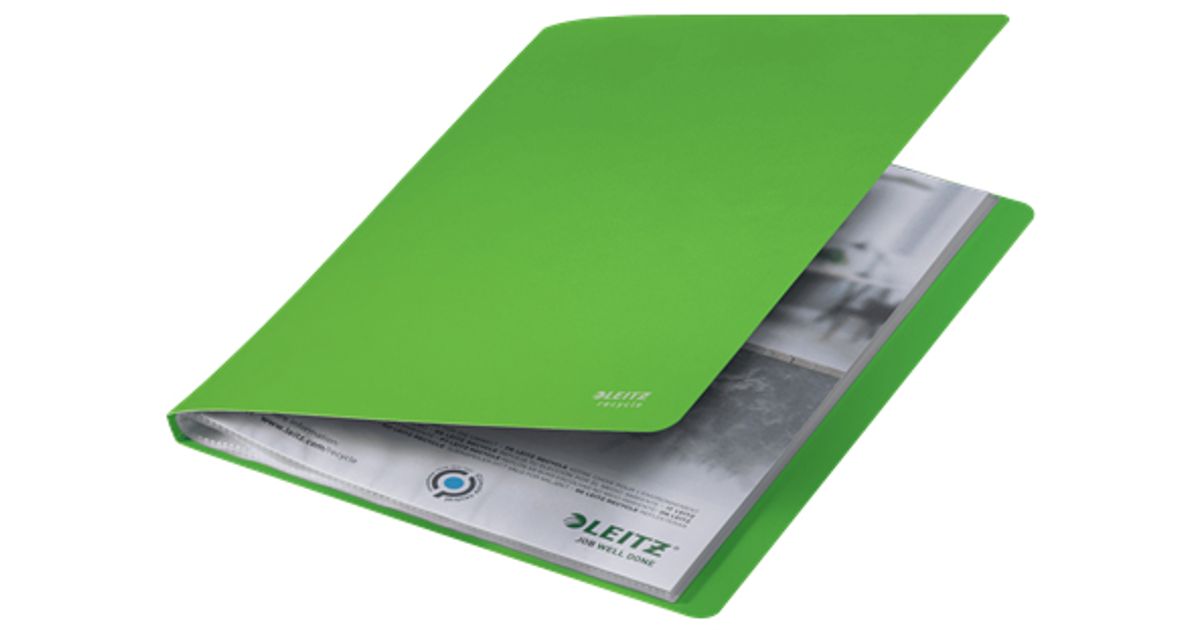 Eye-catching, premium quality PP Display Book for every day use in school, office and home. 20 clear plastic pockets fixed inside the spine, ideal for presenting and carrying printed A4 drawings, photos and papers. Made with 90% (mix of pre- and post consumer) recycled PP, 100% recyclable and climate neutral. This robust and practical presentation book perfectly complements other products from the Leitz Recycle range and is made to last. Modern and contemporary green stationery that will look great at home and in the office. With the eco friendly Recycle range from Leitz you can both improve your office environment – and the environment of our planet.