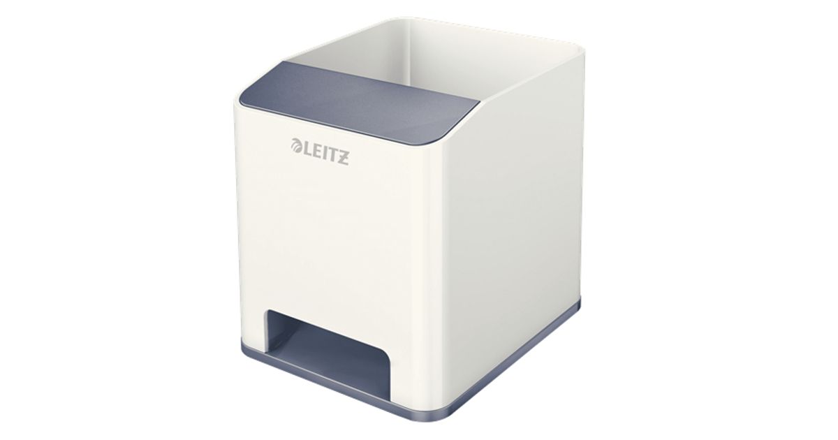 The eye-catching, premium quality Leitz Pen Holder comes in striking and stylish metallic dual colours with a high-gloss finish. This pen holder with sound boosting function perfectly complements other products from the Leitz WOW range. It has a modern and contemporary design that will look great at home and in the office.