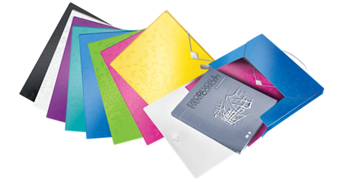 High quality, lightwear PP box file in vibrant WOW colours with stylish geometric pattern. Ideal for carrying and storing large documents, folders or other WOW products.