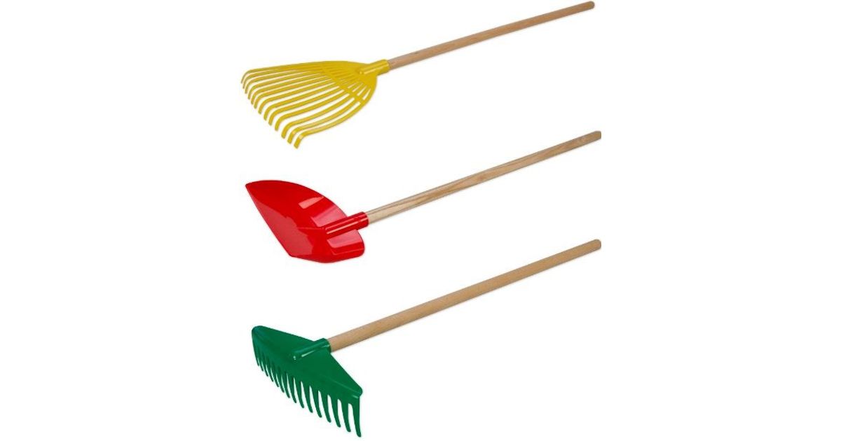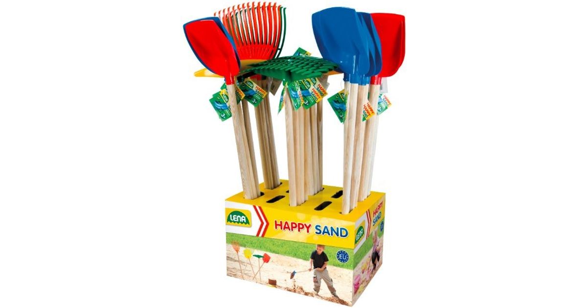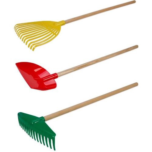 LENA® Garden devices, wooden stick, from Germany. 3-sorted, eachconsisting of 4 leaf rakes, 8 rakes, 12 shovels. Colour changes arepossible.