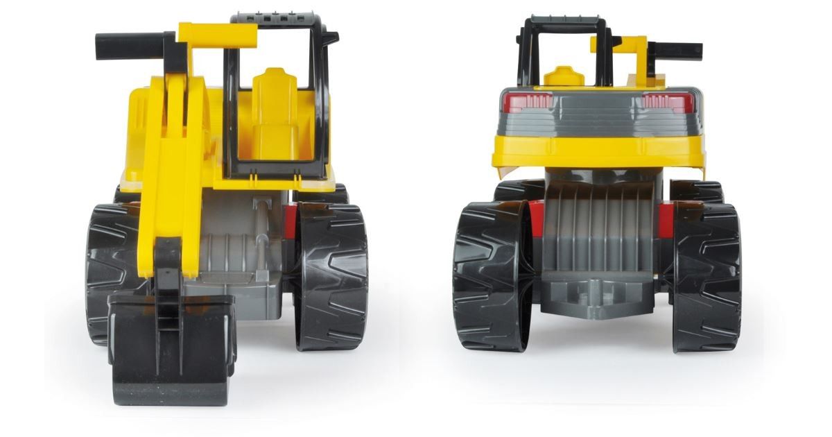 LENA® Powerful Giants Excavator white-yellow in a modern detailed design and in realistic colours equipped with all functions - shovels a 13 cm deep hole in the sand, 360° movable and lockable top part, moving of the shovel with 2 handles, 80 cm length, suitable for children from 3 years indoors and outdoors.