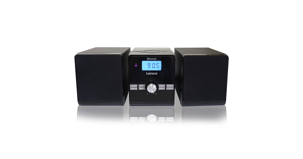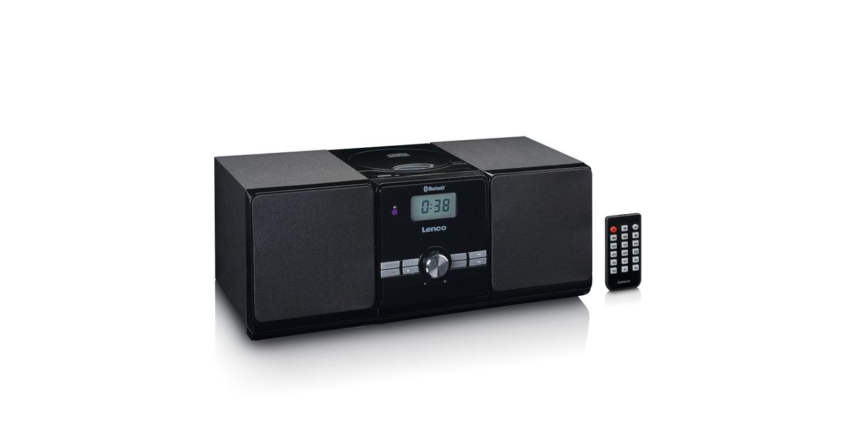 The Lenco MC-030BK microsystem is a complete hi-fi set with 2 wooden speakers and a built-in amplifier. Both speakers have a power of 5W RMS which allows you to listen to a room filled with the sound of your favourite music while you operate it from the sofa via the remote control.