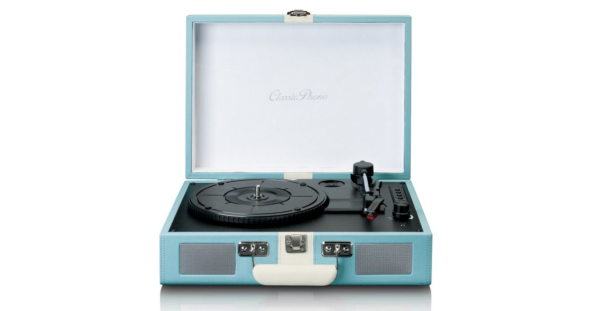Enjoy the retro design of the Lenco TT-110BUWH. This suitcase record player has modern functions and playback options with a beautiful vintage design.