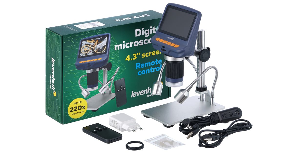 Levenhuk DTX RC1 Remote Controlled Microscope is a modern optical digital device that is indispensable when working with jewelry, watch mechanisms, electronic circuit boards, and other small and complex objects. Thanks to the wireless remote control, the main functions of the microscope can be used at a considerable distance from it. This is especially convenient during presentations and group research.