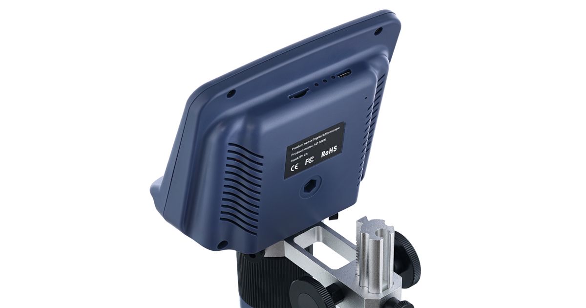 Instead of the classic eyepieces, there is a 4.3-inch color LCD screen. It captures an image observed through the objective and shows it in real time. If necessary, the image can be displayed on a computer screen. To do so, connect the microscope to the computer using the included USB cable. You can use optical or digital magnification for studying specimens. The total magnification range varies from 3 to 220 times. The microscope also allows for capturing high-resolution images and recording videos in Full HD quality (requires a memory card, not included).