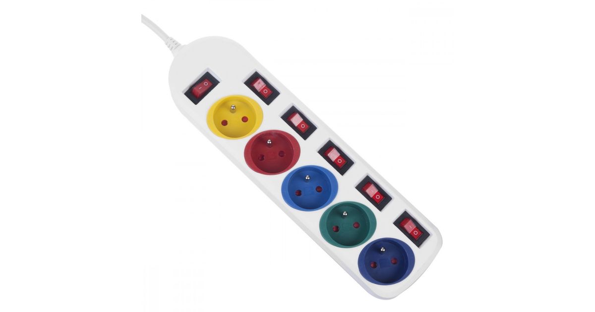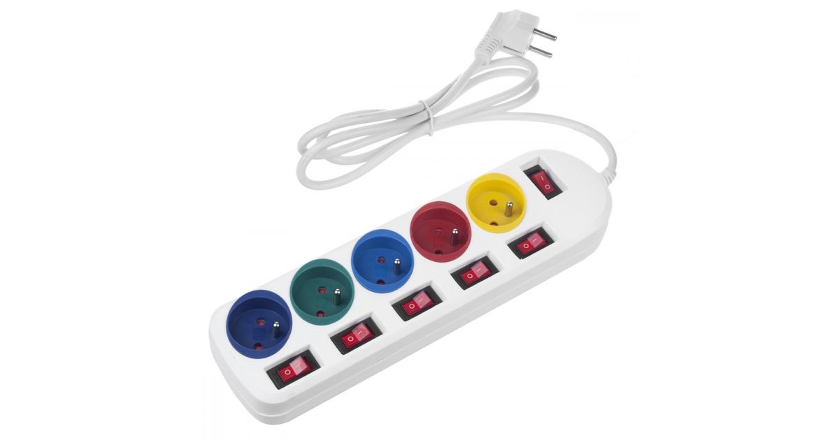 Listwa zasilająca Maclean Listwa zasilająca Maclean, przedłużacz 5 gniazd, z włącznikami, 250VAC/10A, 1.5m, MCE204 M/W